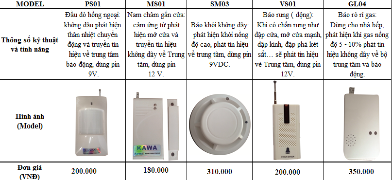 - Trọn bộ bao gồm : Bộ điều khiển trung tâm, 1 đầu báo trộm lắp tường, 1 đầu báo trộm lắp cửa, 1 còi có dây, 2 điều khiển từ xa, 1 adaptor nguồn.