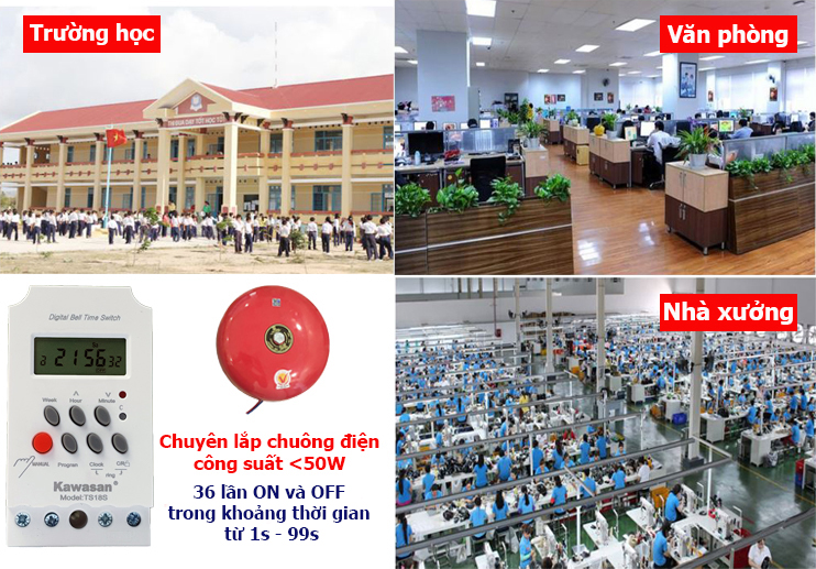 - Hẹn giờ tự động reo chuông báo cho trường học, nhà xưởng, văn phòng làm việc,...
