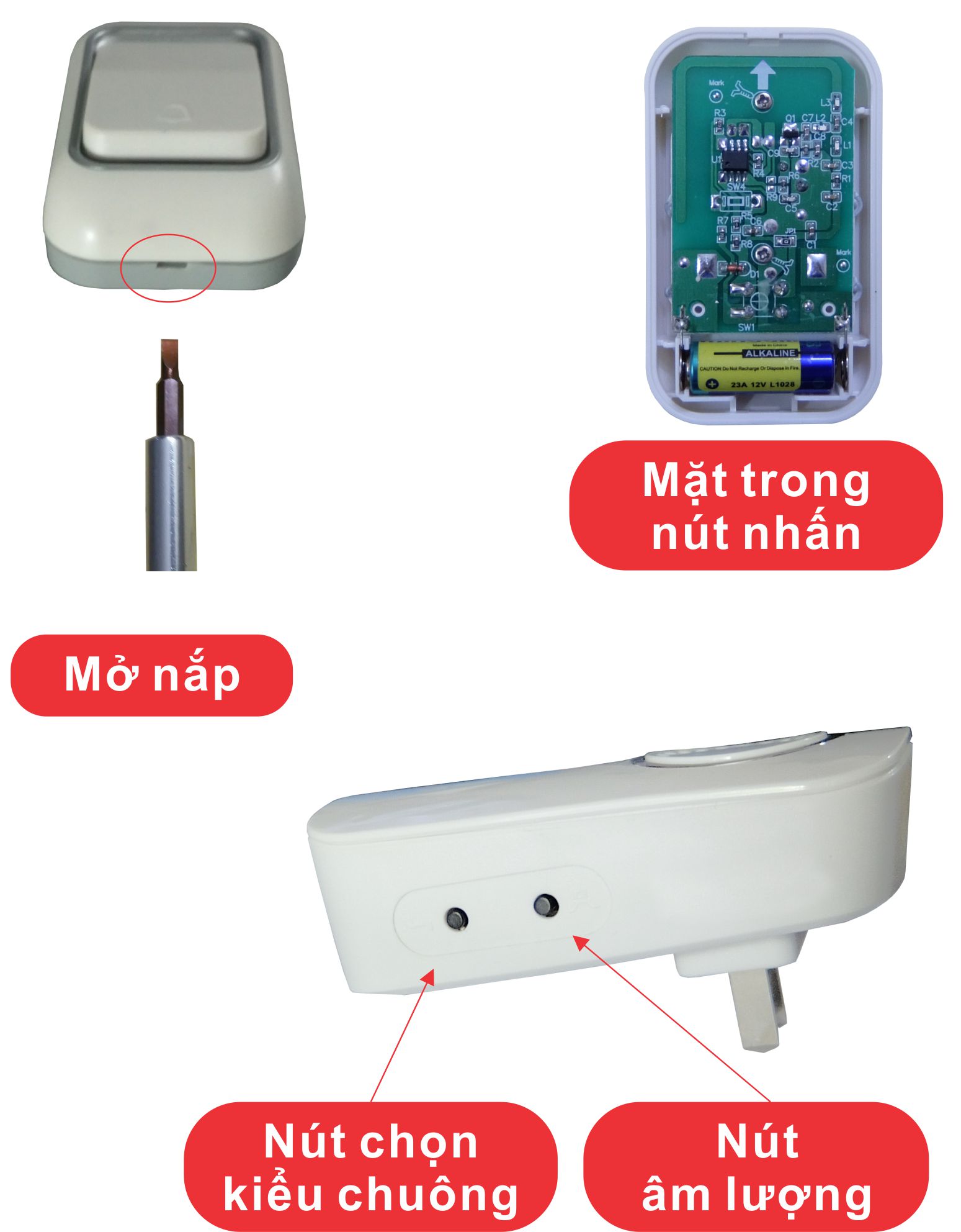* Nhấn giữ nút chọn kiểu chuông 6 giây là để tích hợp thêm chuông hoặc nút chuông nếu cần thêm vị trí cần lắp thêm chuông hoặc nút chuông.