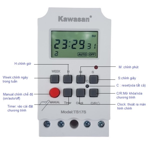 -Công tắc hẹn giờ sẽ hoạt động tuân hoàn theo chu kỳ tự động đã cài đặt (theo ngày hay tuần ),không cần cài lại sau mỗi ngày hoặc mỗi tuần