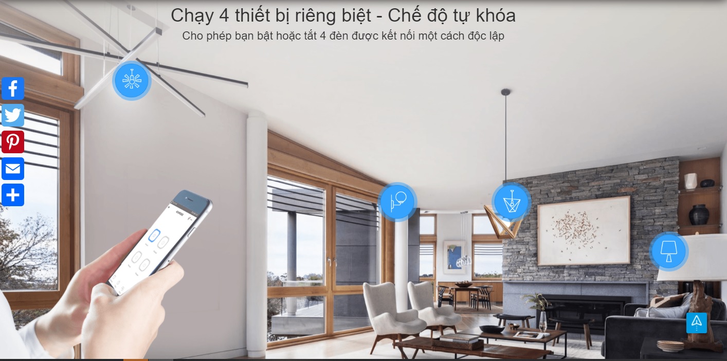 Ứng dụng điều khiển trên điện thoại cả Ios và Android. Giao diện trực quan dễ sử dụng.