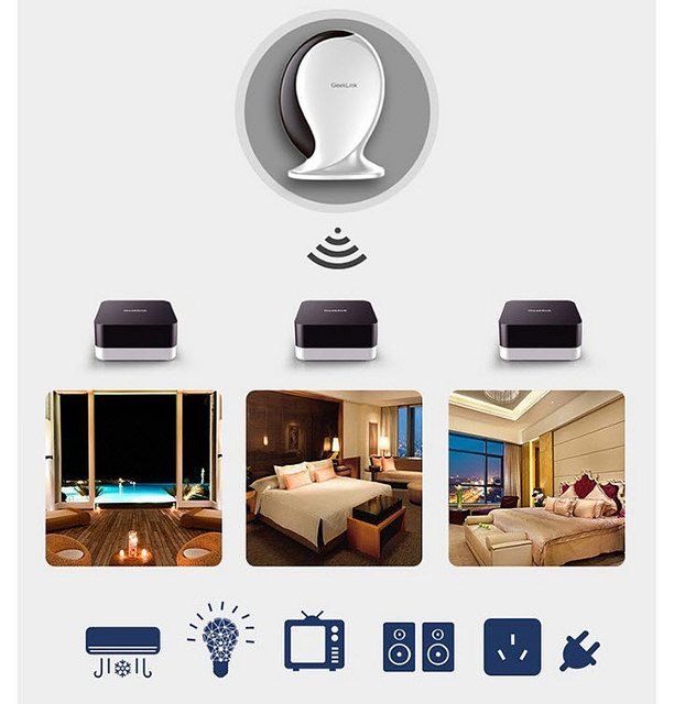 - Bộ trung tâm điều khiển Geeklink Thinker GT-1 có khả năng học lệnh các remote hồng ngoại và remote vô tuyến có trong nhà bạn, như remote tivi, DVV, máy lạnh, rèm cửa, remote cửa cuốn...